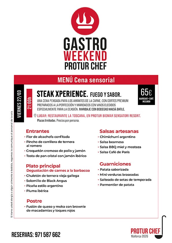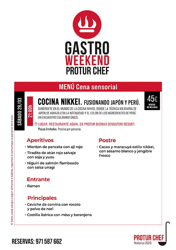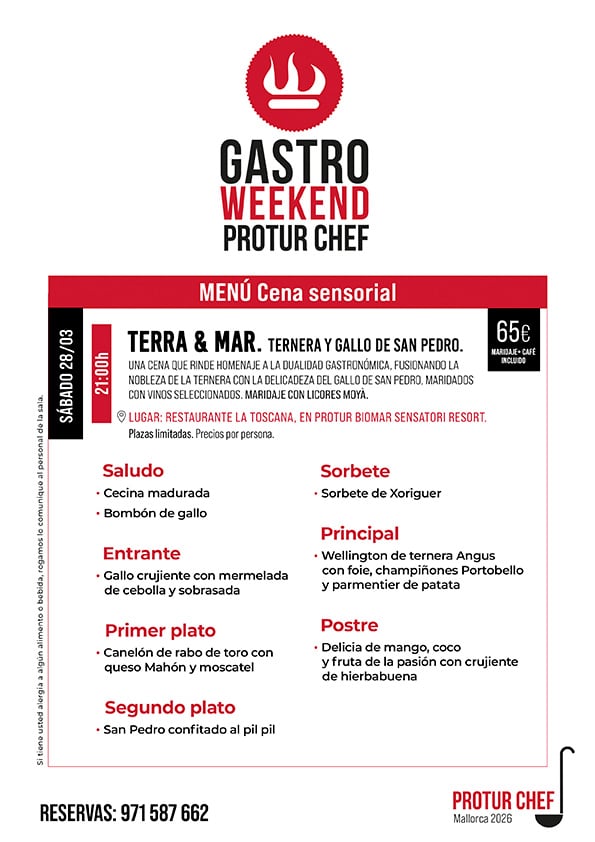 El Gastro Weekend Protur Chef 2026 transforma la mesa en un escenario de sensaciones. Prepárate para vivir un fin de semana donde la alta gastronomía y el mundo del vino se fusionan en perfecta armonía.